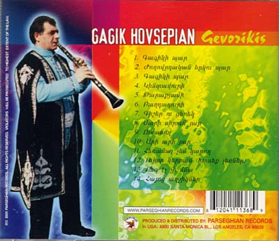 The back also lists fourteen tracks in Armenian. I have no idea what the songs are called but it hardly matters. All are nearly identical consisting of a clarinet coupled with canned beats from a drum machine. They are so similar that I suspected the audio engineer somehow plastered one song all over the disc. But it doesn’t matter. The music rocks and you can listen to any of the songs and get the same good vibe.