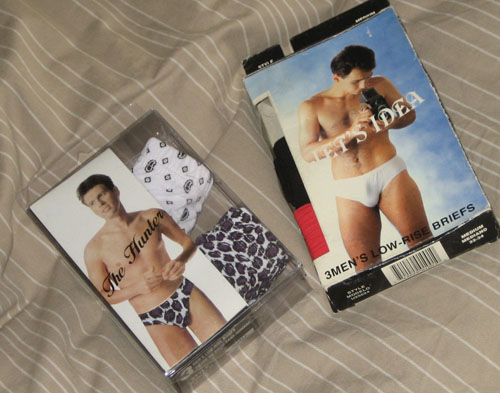 This is the type of underwear I like. A simple and manly banana hammock like the Hunters. In fact, one pair of underpants is missing from the box because I wore them.